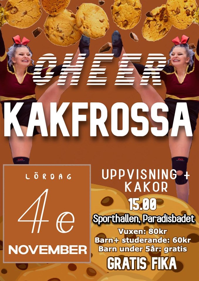 Lördagen den 4e November klockan 15.00 annordnar Cheer sektionen säsongens första kakfrossa med uppvisning i Sporthallen på Paradisbadet! Biljetter köps på plats och gratis fika ingår i priset. Vi ses väl? Örnsköldsviks GK 23 okt 2023 0kommentarer