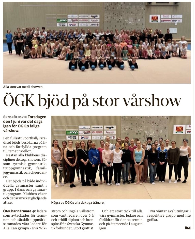 Artikel i Allehanda Nära - ÖGK Vårshow 2023 Våra duktiga parkourledare var med i en del av avslutningsnumret- (föll bort i texten ) Foto : Markus Horkamo Örnsköldsviks GK 7 jun 2023 0kommentarer