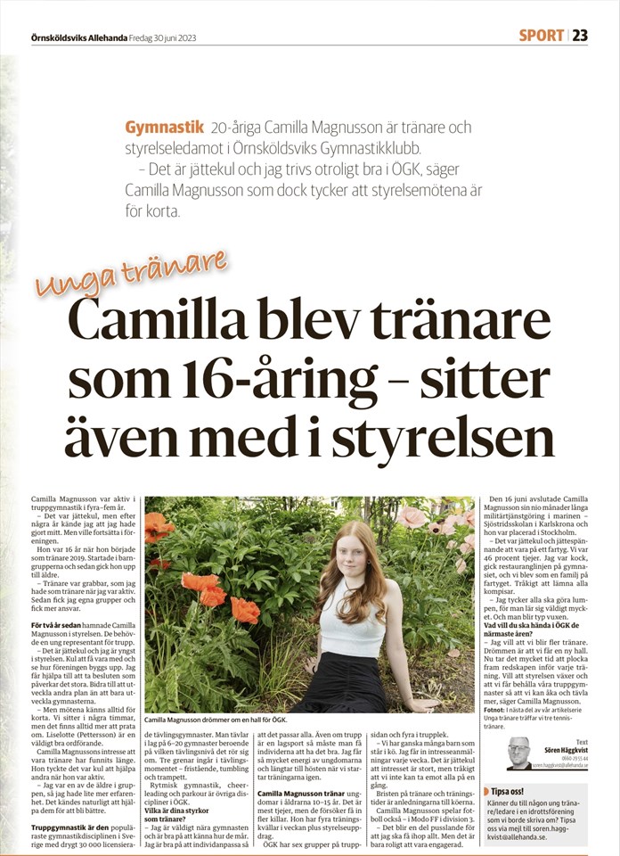 Läs i Örnsköldsviks allehanda om vår duktiga tränare / styrelseledamot Camilla Magnusson Text Sören Häggkvist Örnsköldsviks GK 30 jun 2023 0kommentarer