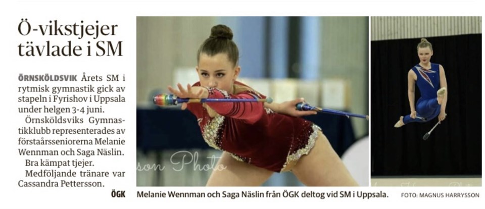 I dagen Allehanda Nära 5/7 finns en kort artikel från SM i rytmisk gymnastik - Melanie Wennman och Saga Näslin Örnsköldsviks GK 5 jul 2023 0kommentarer
