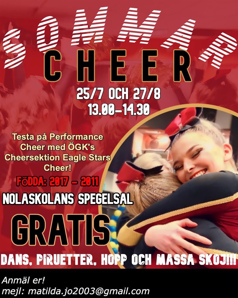 I sommar har cheer sektionen satt ihop två tillfällen att testa på Performance Cheer! Ta chansen att träna med tävlingsdansare och Coaches i Örnsköldsviks Cheer lag Eagle Stars! Under aktiviteterna får barnen lära sig grunderna inom sporten och även sätta ihop en rolig dans. Passa på och anmäl er nu, helt gratis! Vi ses! Örnsköldsviks GK 5 jul 2023 0kommentarer