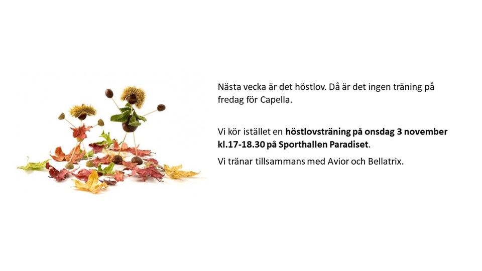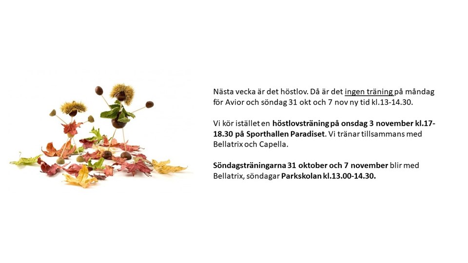 • Höstlovsträning ons 3 nov, ingen träning fredag